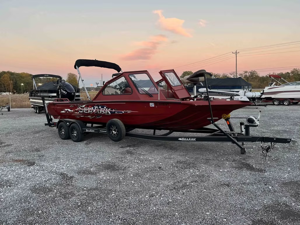 The 2024 SeaArk Dynasty is a spacious 24'6" pre-owned aluminum catamaran-style boat perfect for versatile fishing and family use. With only 60 hours on the Suzuki 300 HP engine, it offers a stable 94" beam, full enclosure for weather protection, and advanced electronics like Helix 15 and Helix 9 units. Equipped with a 36v Ulterra trolling motor, hydraulic jack plate, and washdown pump, this boat ensures precision control and convenience on the water. Great for multi-day trips or competitive angling, it delivers power, reliability, and comfort. Visit Dry Creek Marine to check it out and schedule a test drive today!