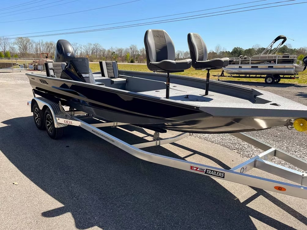 The 2025 Excel Bolt 203 is a rugged, high-performance aluminum boat engineered for serious anglers and outdoorsmen. Built with Excel’s legendary toughness and paired with a powerful Suzuki 150 HP outboard, this boat delivers excellent speed, stability, and reliability on rivers, lakes, and backwaters. Whether you're chasing fish or just exploring the wild, the Bolt 203 is ready to handle it all—and it comes complete with a tandem aluminum trailer for easy transport and long-lasting durability.