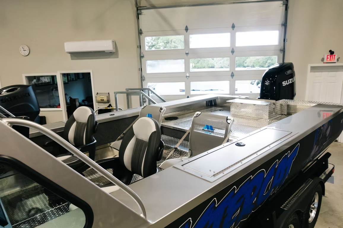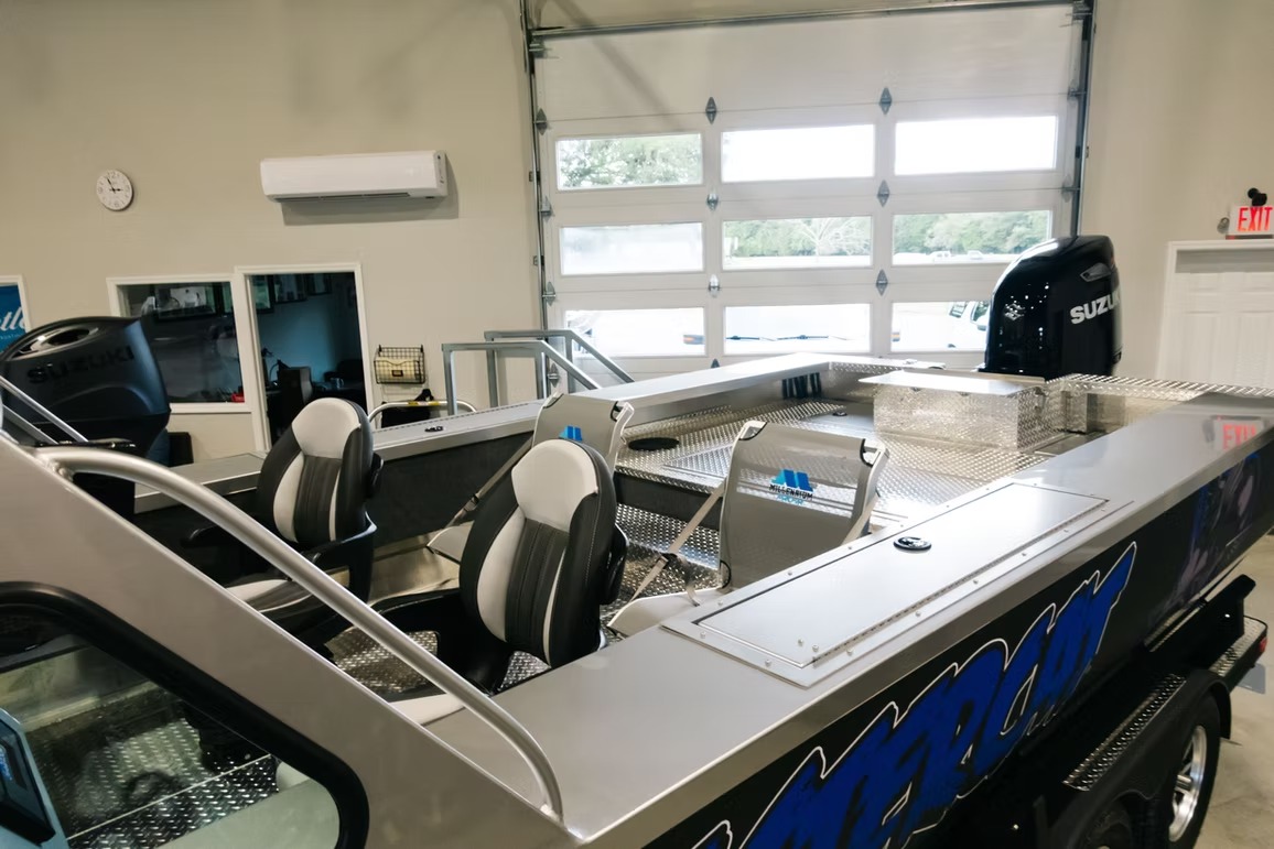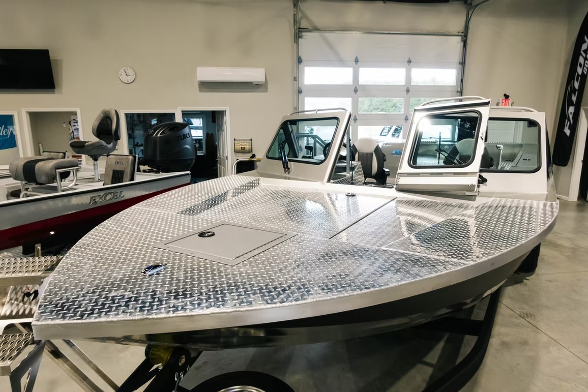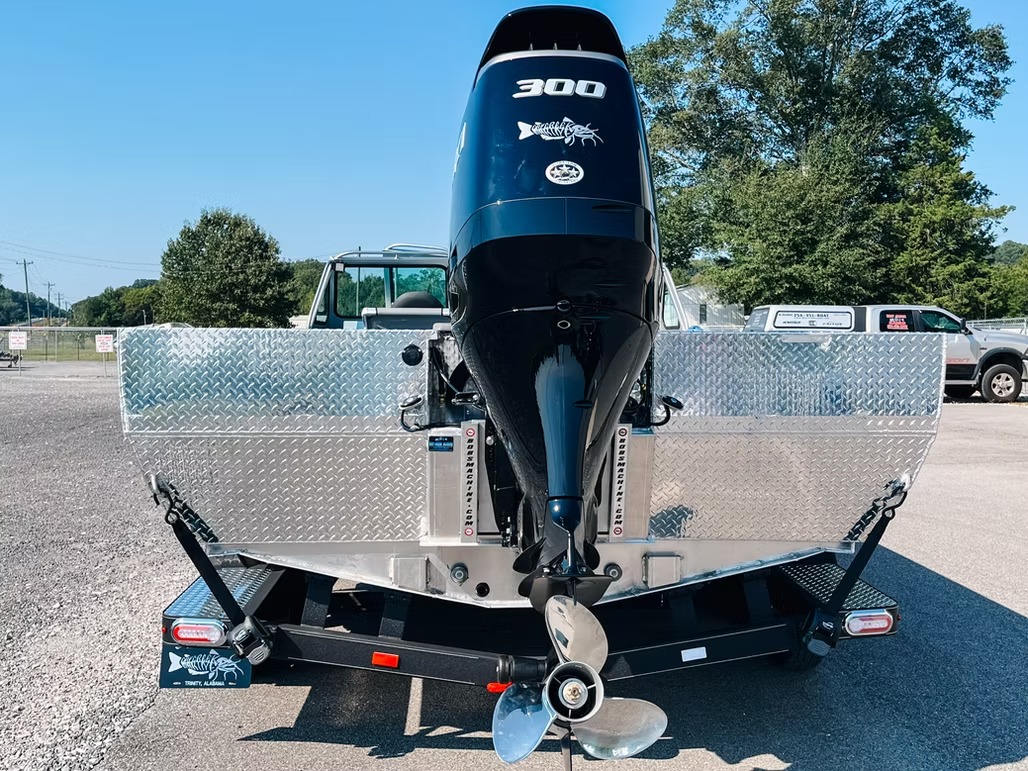 Tournament-ready aluminum boat with a 24 2" length, 102" beam, and Suzuki DF300 APX5 for top speed and stability. Ideal for serious anglers.