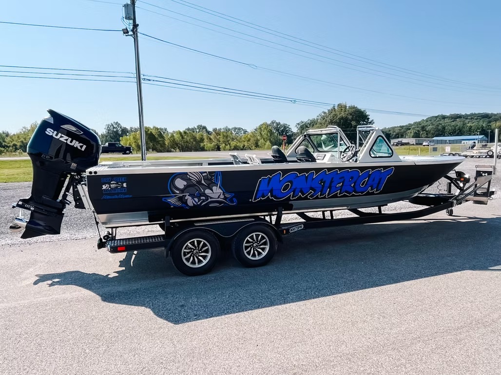 Powered by a factory-fresh Suzuki 300 HP four-stroke outboard (0 hours, full warranty), the Monster Cat 24 offers outstanding hole shot, top-end speed, and fuel efficiency whether you’re drifting, anchoring, or running long distances between spots. The deep V-hull design cuts through rough water with confidence, while the rugged construction and oversized stringer system ensure years of dependable service in the toughest conditions.
