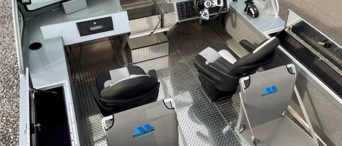 Millennium seating with optional shock-mount bases ensures lasting comfort through long runs and full fishing days.